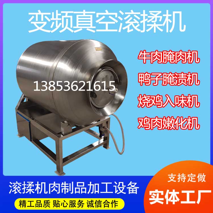 真空滚揉机的呼吸腌制功能,得到市场认可,目前市场上的真空滚揉机,采用真空挤压的物理方式,在真空状态下,进入桶内的肉类在不断的自挤压作用下,进行冲击揉搓,达到快速腌制入味的效果。我们公司生产真空滚揉机,腌肉机,入味机,嫩化机等食品深加工设备,采用不锈钢制作,操作方便,电脑控制板设置时间,效率高,入味均匀。