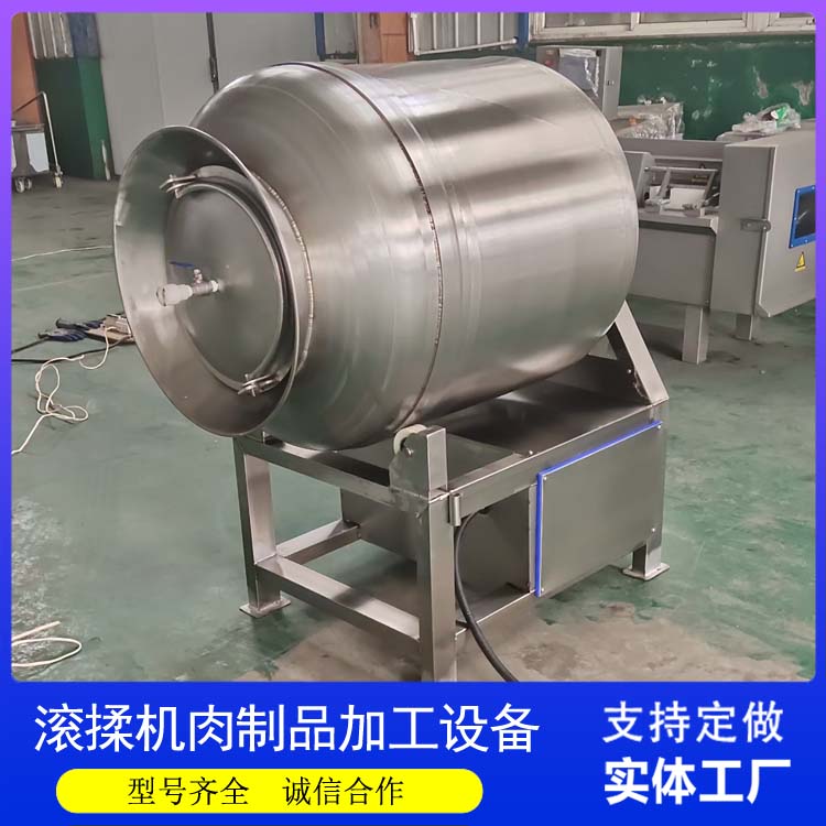 在材质选择和结构设计上,真空滚揉机采用304不锈钢板材。这种材料具有出色的耐腐蚀性和卫生安全性,能够抵抗腌制液中的盐分和酸性物质的侵蚀。设备采用全封闭设计,有效防止外部污染物的进入。滚筒内表面经过精细抛光处理,粗糙度低,既减少了物料粘附,也便于清洁。真空系统配备高精度控制装置,能够根据产品特性调整真空度,确保加工效果的一致性。